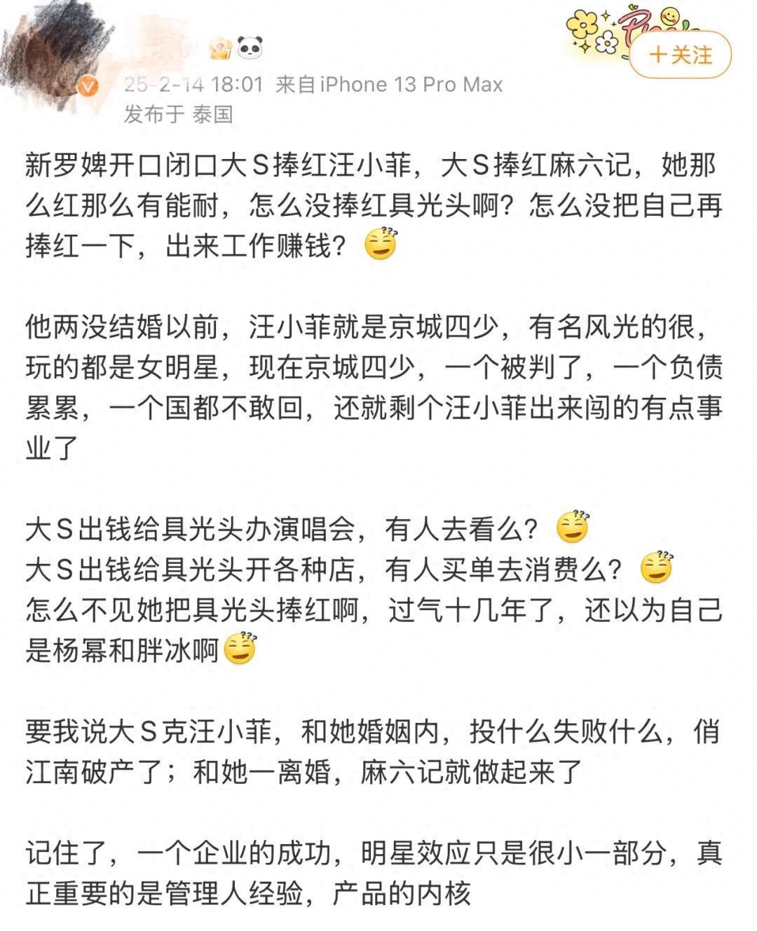看到了这么一篇关于汪小菲大S的文章,里面的观点句句像是在讲道理,却句句没有道理,皆是诡辩,忍不住反驳她的言论。